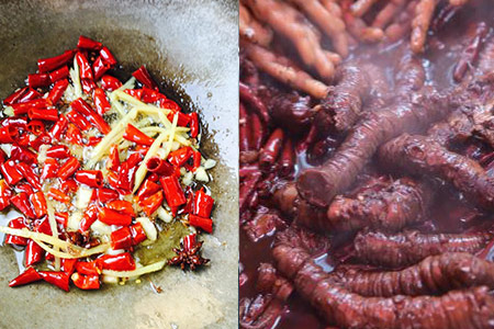 3、将八角、姜片、大料、盐、生抽以及红辣椒等放入锅中并加水烧热,将缠好的小肠卷放入锅中。等水烧开之后,就可以将小肠卷取出。等小肠卷冷却之后,朋友们就可以将其切成薄片,这样吃起来香脆可口,而且还特别有弹性。吃不完的猪小肠卷,就可以装在容器之中放入冰箱进行冷藏,这样吃起来味道更鲜美。
