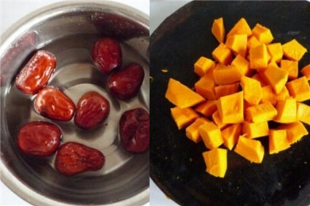 step1,首先我们需要准备好一些红枣、南瓜和红糖。