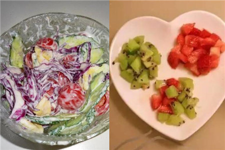 步骤3,把我们切好之后的紫包菜和水果放在一个干净的大碗里面,然后放入适量的沙拉酱就可以了,把它们和沙拉酱搅拌均匀就可以吃了。其实如果是想要减肥的女性,在晚餐的时候我们就可以不用吃其他食物,直接吃紫包菜做出来的水果蔬菜沙拉,可以有助于减肥。