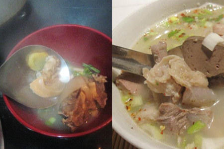 第四, 在进食的碗里放入适量的青蒜末、香菜等,将汤直接盛起在碗里即可。