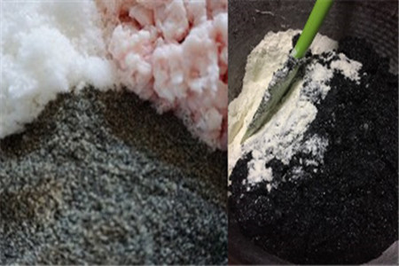 把白糖、猪油、黑芝麻粉按7:7:5的比例(可以不用太严格,白糖和猪油一样的量,芝麻粉稍少一些就行)搅拌混合好,一定要做到均匀混合,否则会影响口感。