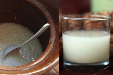 第二步:将准备好的大米用水浸泡一个晚上,第二天将浸泡过的大米沥干。将大米放在蒸笼上面,均匀摊开,然后隔水将大米蒸熟。蒸熟后的大米需要冷却,你可以用保鲜膜将饭桌盖好,然后将米饭摊在桌子上快速降温。当米饭冷却到常温状态时,就可以将榨好的甘蔗汁倒入米饭中搅拌均匀。一定要搅拌均匀,因为这影响着后期的发酵程度和酒的风味。