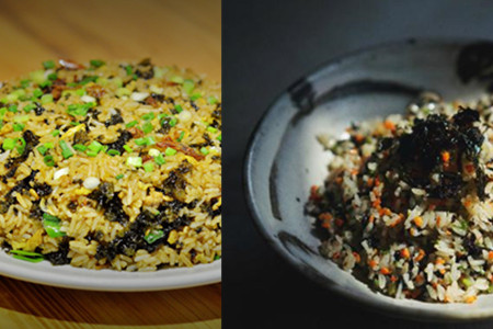 菜谱一:紫菜炒饭。所需材料:紫菜、干贝、牡蛎、虾米、香菇、胡萝卜、芹菜、洋葱、姜、细香葱、香菜、食物油、胡椒粉和食盐。做法参考普通炒饭做法即可,这款炒饭既有海鲜的香味,又有紫菜的鲜味,家里的小孩子一定很喜欢吃。