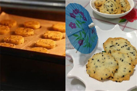 烤箱200度预热5分钟,之后将烤盘送入烤箱,200度上下火烤15分钟即可,美味的芝麻薄饼就做好 。