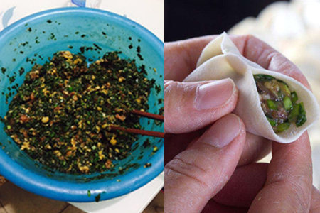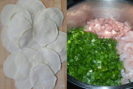 韭菜要放入猪肉里拌均匀,记得韭菜不能搅拌太厉害,因为韭菜搅拌久了会出汁液。饺子皮可以直接到市场购买,也可以自己购买饺子粉自己揉。肉馅做好之后,就可以放入饺子皮中间,只要轻轻捏一下饺子就包好了。为了增加饺子皮的粘性,大家可以在饺子边缘刷一层水,这样会比较好粘合。