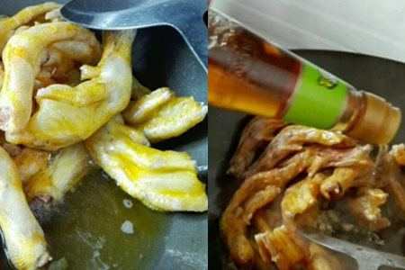 浸泡好后的鸭掌就可以拿去油炸了。锅里的热油要八成热,鸭掌外面的粉要裹得均匀一点,这样炸出来的鸭掌要比较好吃。为了增加口感可以在里面加一点苹果醋。鸭脚掌油炸的过程中要不停翻动,因为油炸的时候容易出现炸焦的情况。为了让炸出来的鸭脚掌膨胀一点,一般可以用牙签撑开。