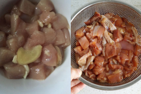 2、鸡肉和香菇的处理