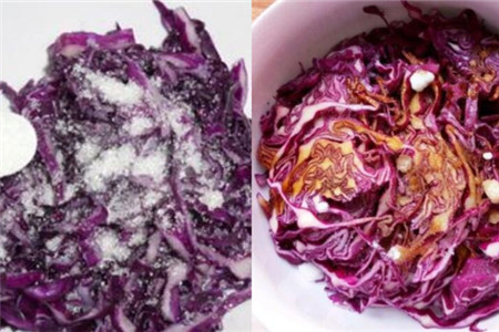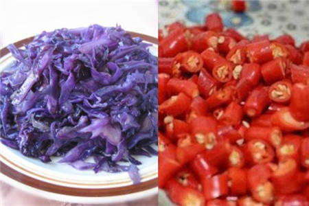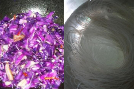 当然我们也可以加入一点其他的东西和紫甘蓝一起炒着来吃,比如说很多人都非常喜欢的粉丝。如果我们是炒紫甘蓝粉丝的话,那么我们还需要把粉丝放在锅里面煮软了之后,把它捞起来,然后再放入快要被炒熟的紫甘蓝里面。