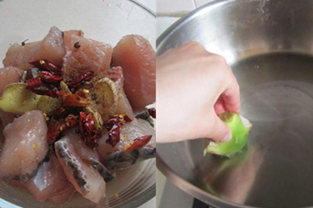 鱼块事先用盐和香料腌制入味,而且生抽也含有盐分,后面就不要放盐了。用姜块涂抹锅底,是为了让鱼块不粘锅。