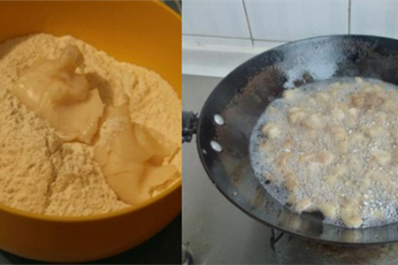 将准备好的猪板油放在油锅之中熬好,将我们制作好的红糖面团放入锅中煎炸,主要是让猪油充分的融入面团里面,比较好的是猪油完全浸没面团才好,这样猪油糖便制作完成了,你们学会了吗?