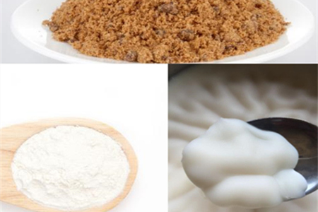 接下来我们便来讲一讲猪油糖的制作步骤。首先我们准备猪板油,面粉,酵素,红糖等。将温水放在面粉中加入酵素充分揉,揉成面团,然后就将红糖与面团混合。