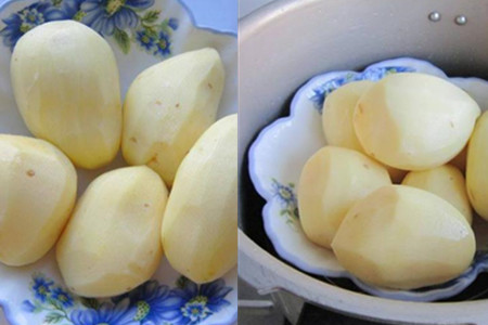 土豆全部洗净去皮,高压锅加水上灶,放入去皮的土豆,加盖压10分钟,待高压锅消气后,取出土豆晾凉。