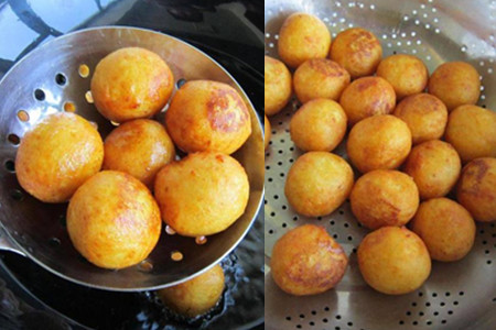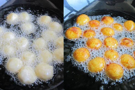面粉不需要多放,可以把土豆泥搓成丸子即可。炸制丸子的时候,一定要先小火再转为中火,这样炸出的丸子才会外酥里嫩。