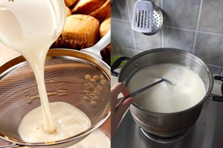 十、如果您使用的是卤水,黄豆与清水的比例是一斤黄豆、六斤清水,点化需要十克卤片,用一百克清水化开。点制方式和使用白醋是一样的,不需累述。