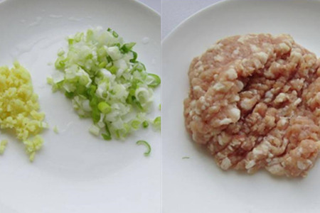 葱姜洗净切细末,猪肉洗净剁成泥状。
