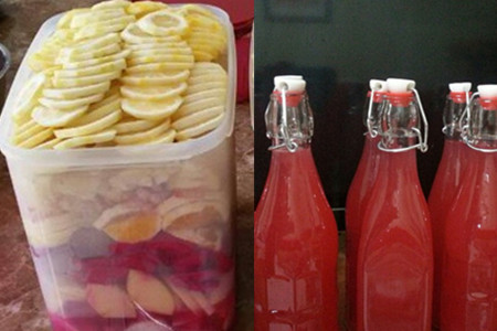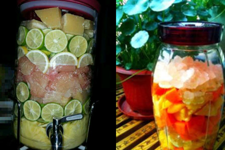 一般介绍水果酵素制作的方法都很简单,就是运用各种新鲜的水果,清洗干净后,切成小块。再用一个玻璃或其它材质的可密封的大罐,把水果块按照一层水果一层糖的顺序,一层一层码在罐子里。然后密封好罐子盖,静置让其发酵一段时间,等里面产生出水,这些水就是据说能美容、排毒、减肥、治病与强体“水果酵素”。