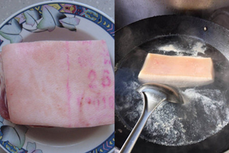 第一, 准备好新鲜的五花肉,清洗干净,去除杂毛后,下到热水锅中焯水,待到肉变色即可捞起沥水备用。