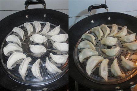 将包好的饺子依次放在蒸格上,不要放太近,否则蒸的过程中会粘连在一起不便于分开,凉水入锅大火蒸大约15分钟即可,蒸好后的饺子皮薄馅大,十分可爱,蘸上好吃的调料简直停不下来。是不是很简单?一起来试试吧。