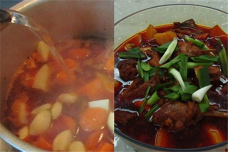 鸡肉块放好后就加入切好的土豆和胡萝卜等蔬菜,然后倒入开水直到淹没食材,盖上高压锅盖子大火煮开,煮开后改成小火再煮几分钟就可以出锅了,装进碗中根据个人口味加入适量食盐和胡椒等调味料,撒上葱花,好吃的鸡肉火锅就做好了。