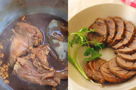 第四, 检查牛肉是否炖好,用筷子可以轻松戳入肉中即可。将酱牛肉捞起,切片摆盘便可享用。