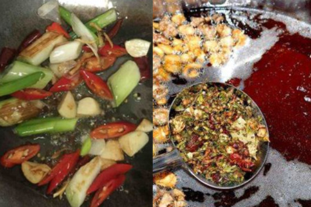 锅里倒入色拉油,把事先准备的葱姜蒜和香料倒进去,炒至出香味。然后加上清水调成汁,水的量要根据驴肉的量来衡量,一定要可以把驴肉覆盖才可以。