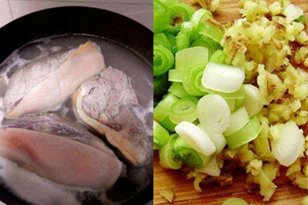这段时间内,可以先把葱、姜、蒜洗净切丝,各类干香料放到碗里备用。