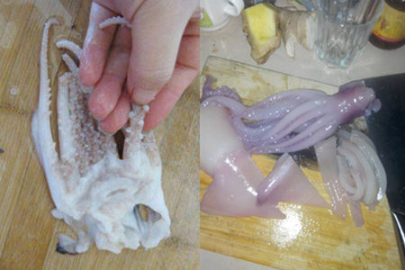 想要清洗干净鱿鱼,其实是非常简单的。刚刚买回来的鱿鱼要先把鱿鱼的眼睛墨汁以及墨袋清理掉,但是一般外面冰镇好的鱿鱼都已经去掉了。处理好之后,大家就可以沿着鱿鱼中间那条切开,这样方便清除内脏。