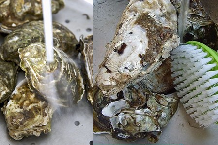 Step3:带上胶皮手套后拿牙刷把生蚝壳表面的泥状物刷干净。然后再用筷子或者是刀把生蚝壳撬开,取出里面的生蚝肉。