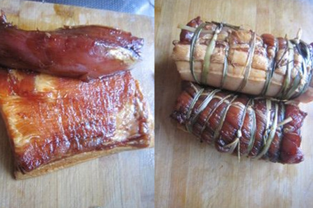 第五,将熬好的酱汁淋在肉上面,等到它凝结之后,将马莲草去掉就能吃了。