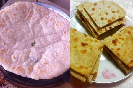 将面粉与水混合后充分的用筷子搅拌,然后用手揉搓,直到形成团状,之后将一大团的面团分成一小个一小个的面团,然后用擀面杖将面团擀成一片薄饼的形状,切记不能够过于薄。