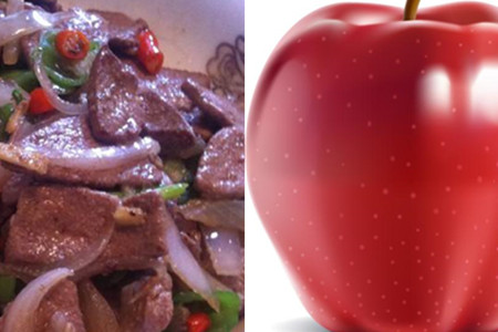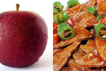 先来看看怎么一起吃这两个东西?无非就是在炒猪肝的时候把苹果也放进去一起炒,然后做好了以后再吃。或者是在吃猪肝的时候在旁边放一个苹果,一边吃饭一边吃苹果,也可以吃完饭来一个苹果。那问题来了,苹果怎么炒?在学校的食堂就会看见一道菜,苹果和鸡肉一起做成的菜,想必在想苹果和猪肝能不能一起吃的时候,心里就知道怎么做了。