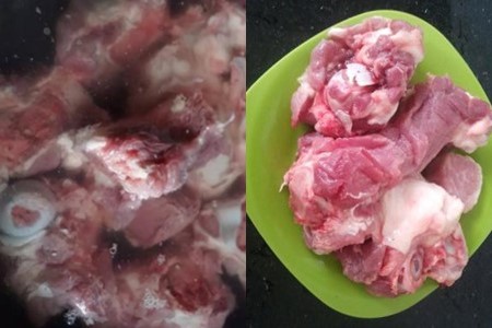 1、 首先拿起来闻闻味道有没有异味,新鲜的猪筒骨是没有任何异味的,当然,这不包含肉味。
