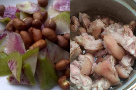 step1、对猪脚进行处理,将其冲洗干净后剁成较小的块状。