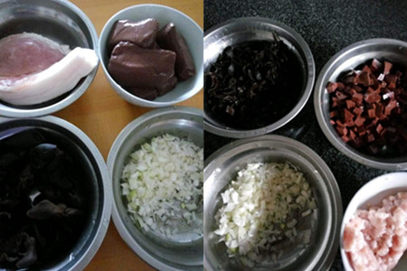 首先,进行食材准备。你需要大肠、粉肠、猪心、猪肝、猪腰、黑木耳等等。