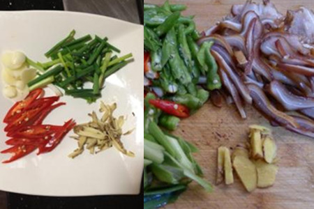 首先,进行食材准备,你需要猪腰、辣椒、瘦肉、香菜、葱、盐、姜等。