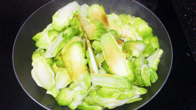 如果喜欢口感软一点的可以炒久一点。我喜欢爽脆的,所以大火稍微炒一会儿就起锅了。