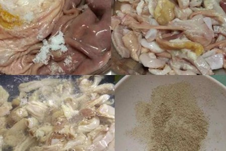 第三步:把白胡椒粉放入猪肚里,并且要留少量的水分。