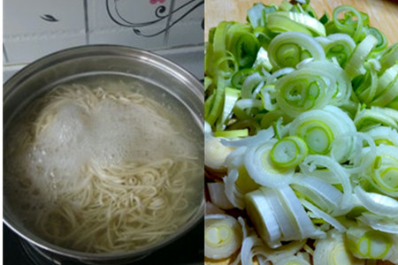 第一步:你需要准备好面条、葱花、香油、生抽以及一些日常需要的调配品,将香葱洗干净之后,再使用菜刀将它切成合适的段状,尽量切碎一点将葱花和葱白分开。