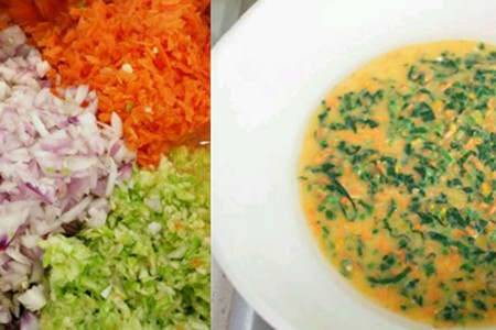 第一,你需要准备好需要的食材,鸡蛋、小麦面粉、食用油、盐是必须的,而需要添加的蔬菜需要依据个人的喜好添加了,建议选择胡萝卜、紫甘蓝、香葱等。