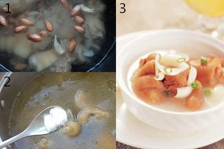 猪脚还可以与山药搭配,熬制山药猪脚汤,别具一番风味。熬制这道汤需要准备山药、猪脚、盐,如果自己喜欢枸杞或者红枣也可以一起煮。