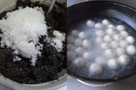 材料:糯米粉300克、黑芝麻300克、白砂糖150克、猪油适量。