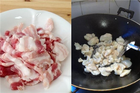 步骤1,我们在切五花肉的时候,先把五花肉洗干净,然后把它切成薄薄的一片,如果切的太厚的话,这样做出来的回锅肉也不正宗。除了要准备葱姜蒜,还需要准备一点蒜苔以及辣椒,因为这也是四川正宗回锅肉的做法,这样会让做出的回锅肉吃起来更加的入味一些。
