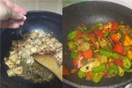 步骤4,把回锅肉已经炒得差不多的时候,就把辣椒以及蒜苔倒进去,然后再继续翻炒,快要起锅的时候把葱倒进去,翻炒均匀就可以出锅了。虽然是一道非常简单的菜,但是所用到的一些辅料却是非常多的,很多人自己在家里面炒的回锅肉其实并不正宗,就是他们的用料不对。