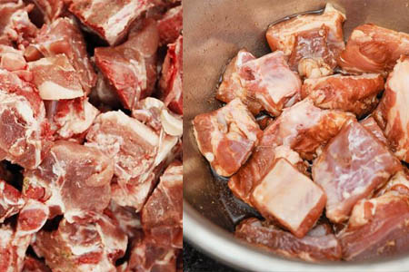步骤二、加入排骨翻炒一会之后再倒入醋