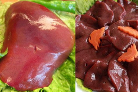 6、如果猪肝的赭红颜色淡白,大而饱满,用手压会下陷,这有可能是注水的猪。