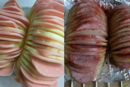第五步,把加了调料的土豆以及培根再次放入烤箱中,注意这次不需要用锡纸包裹,直接放入烤箱的中层烤,温度在200℃,时间约为15分钟,烤好取出即可食用。