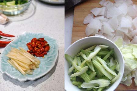 需要的食材有盐,矿泉水以及二锅头,主菜是白菜,红萝卜或者白萝卜,主菜的量可以根据实际情况来定,还需要适量的辣椒,嫩姜和蒜来进行调味。准备好以上的物品就可以开始进行泡菜的制作。