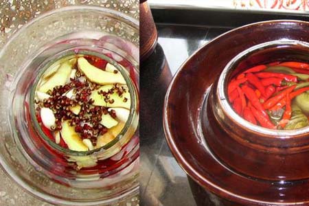 步骤二、将调味料洗干净切好晾干后加入坛子