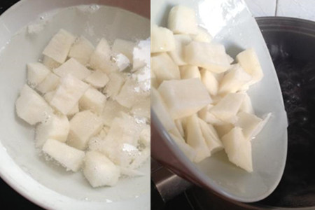 食材:黑米30克、薏米20克、糯米30克、山药200克、水。