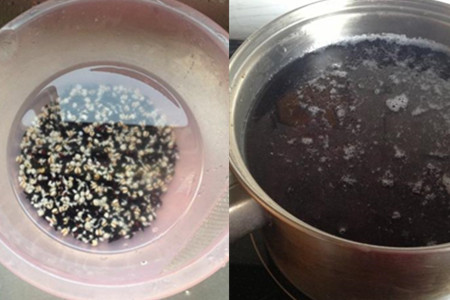 1.把黑米、薏米和糯米这三种米清洗干净,装入锅中,兑入适量清水,煮开。